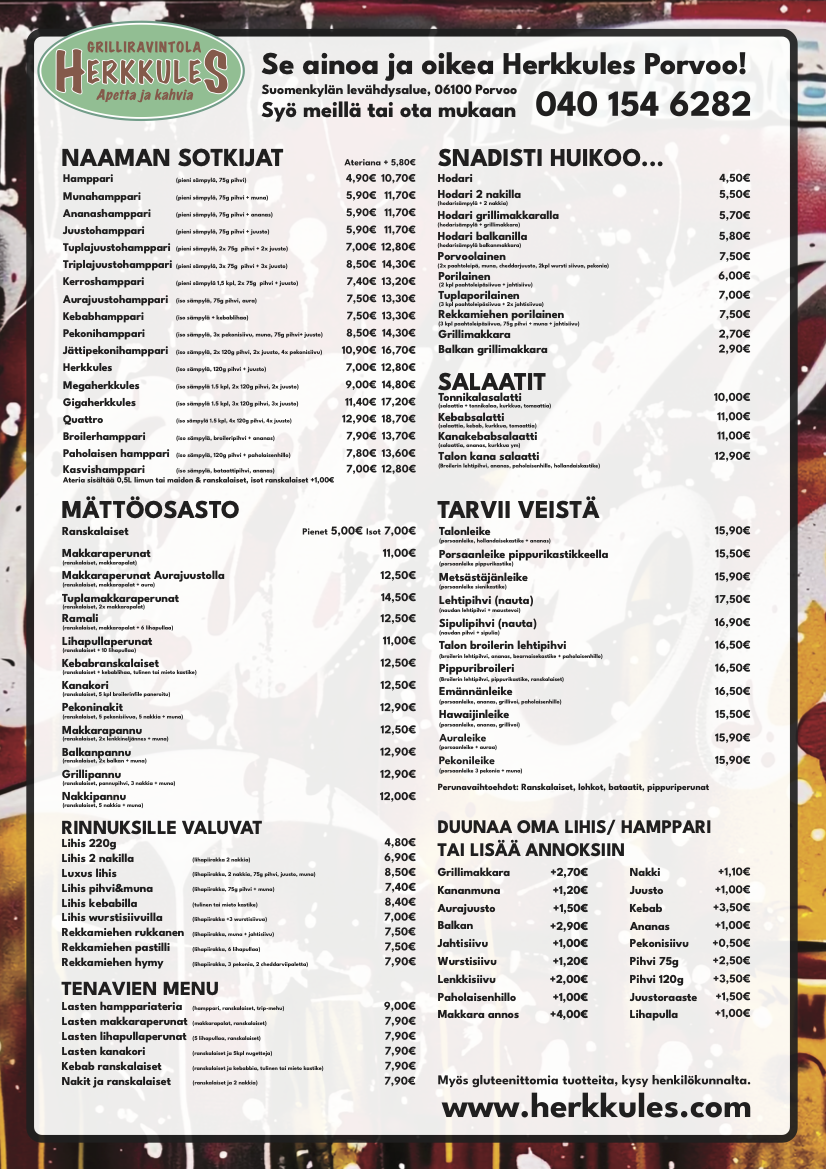 Olit sitten ohikulkumatkalla, matkalla prätkällä tai porukalla liikenteessä, Herkkuleksen grilli pitää huolen, ettei kukaan lähde täältä nälkäisenä.